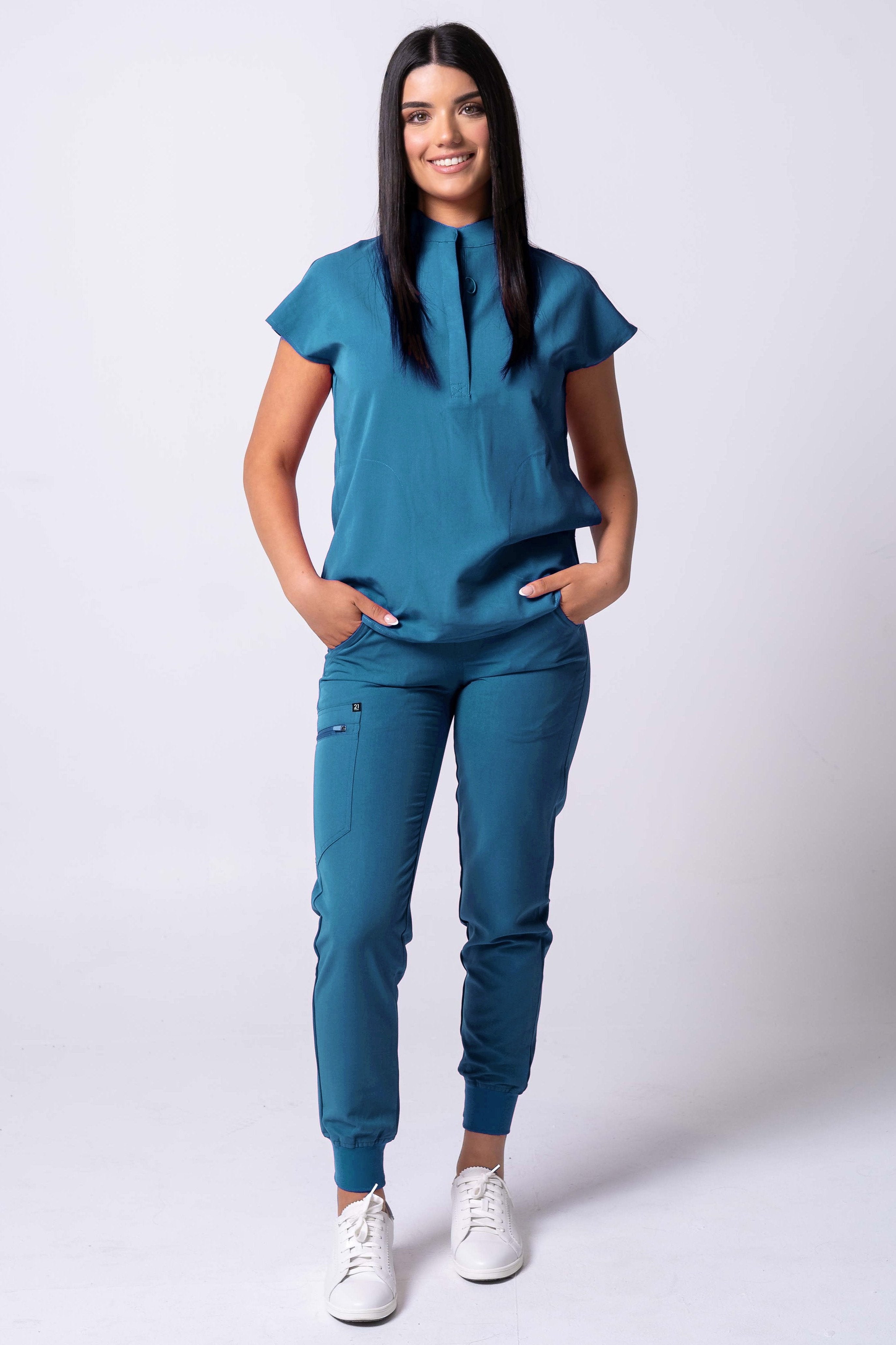 Step into comfort and style with our meticulously crafted Casella Zip Top x Zandt Jogger Set in Dark Teal. Each garment combines essential features designed to support professionals in any medical environment: