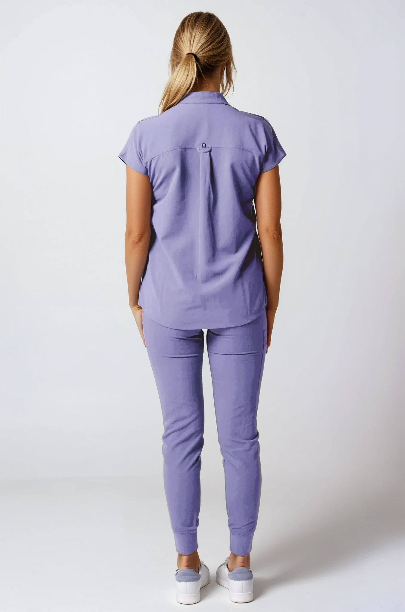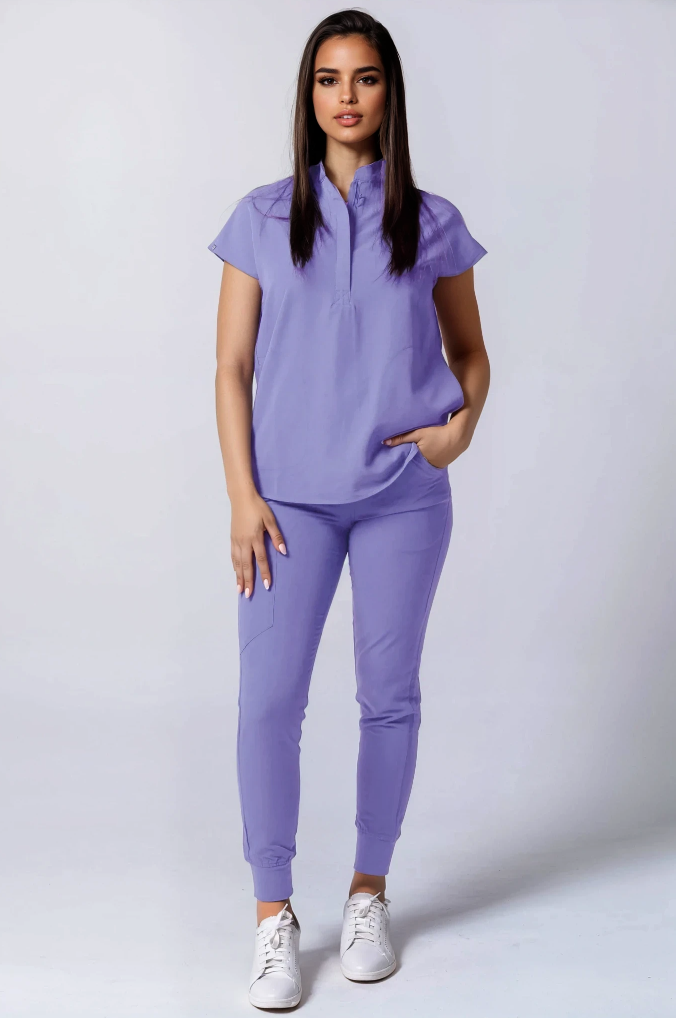 Step into comfort and style with our meticulously crafted Casella Zip Top x Zandt Jogger Set in Lavender. Each garment combines essential features designed to support professionals in any medical environment: