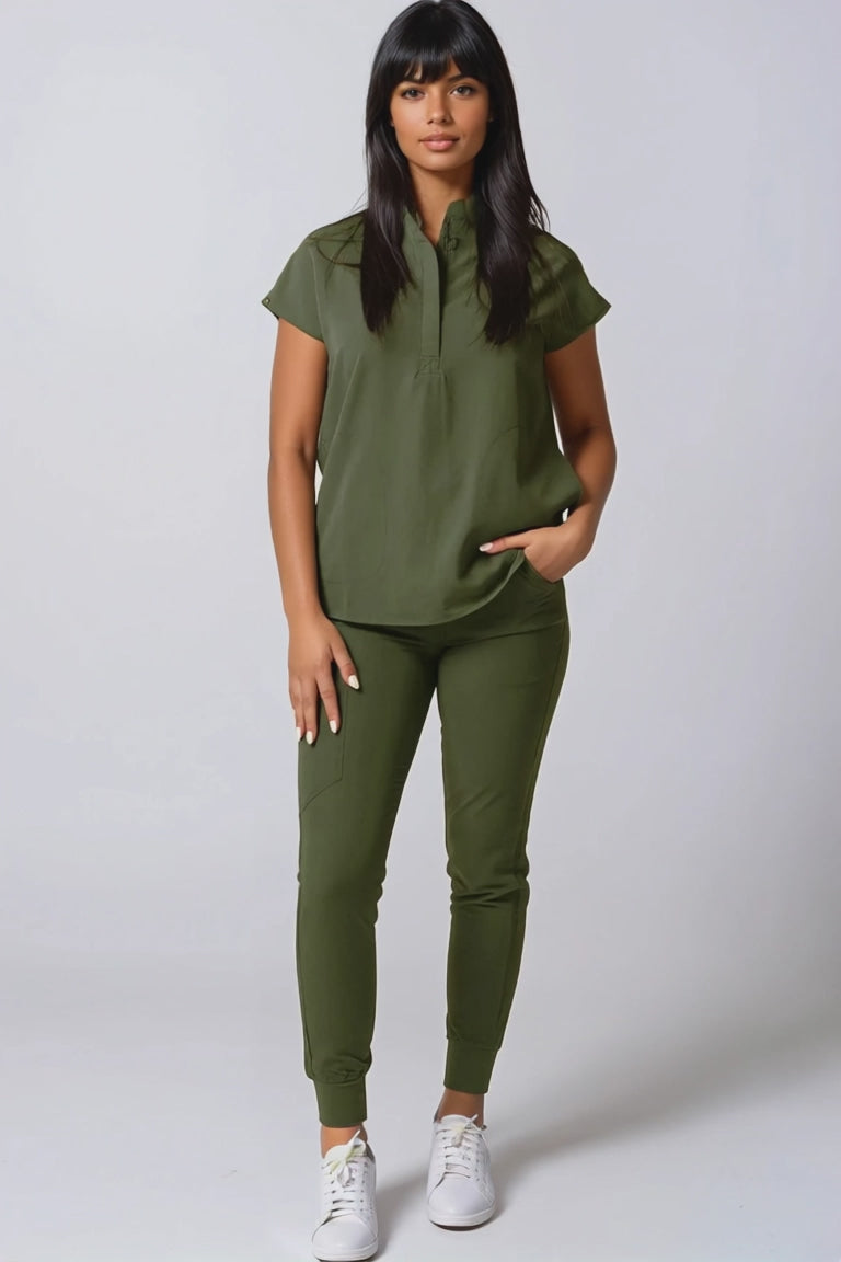 Step into comfort and style with our meticulously crafted Casella Zip Top x Zandt Jogger Set in Khaki. Each garment combines essential features designed to support professionals in any medical environment:
