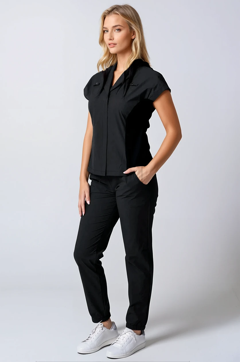 Mess-free with the Save Face Zip Top - just zip on, zip off, and stay clean with our hair and liquid repellent 21Core™ fabric. Paired with the Venus Jogger Pants, featuring a snug cuffed ankle and stretchy comfort, this bundle is all about easy style and functionality for long shifts.