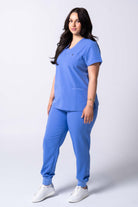 Experience the ultimate blend of functionality and style with our Sigler V Neck Tee x Zandt Cuffed Jogger Set in Ceil Blue. Each piece is crafted with premium features designed for medical professionals: