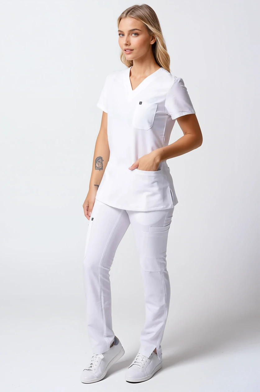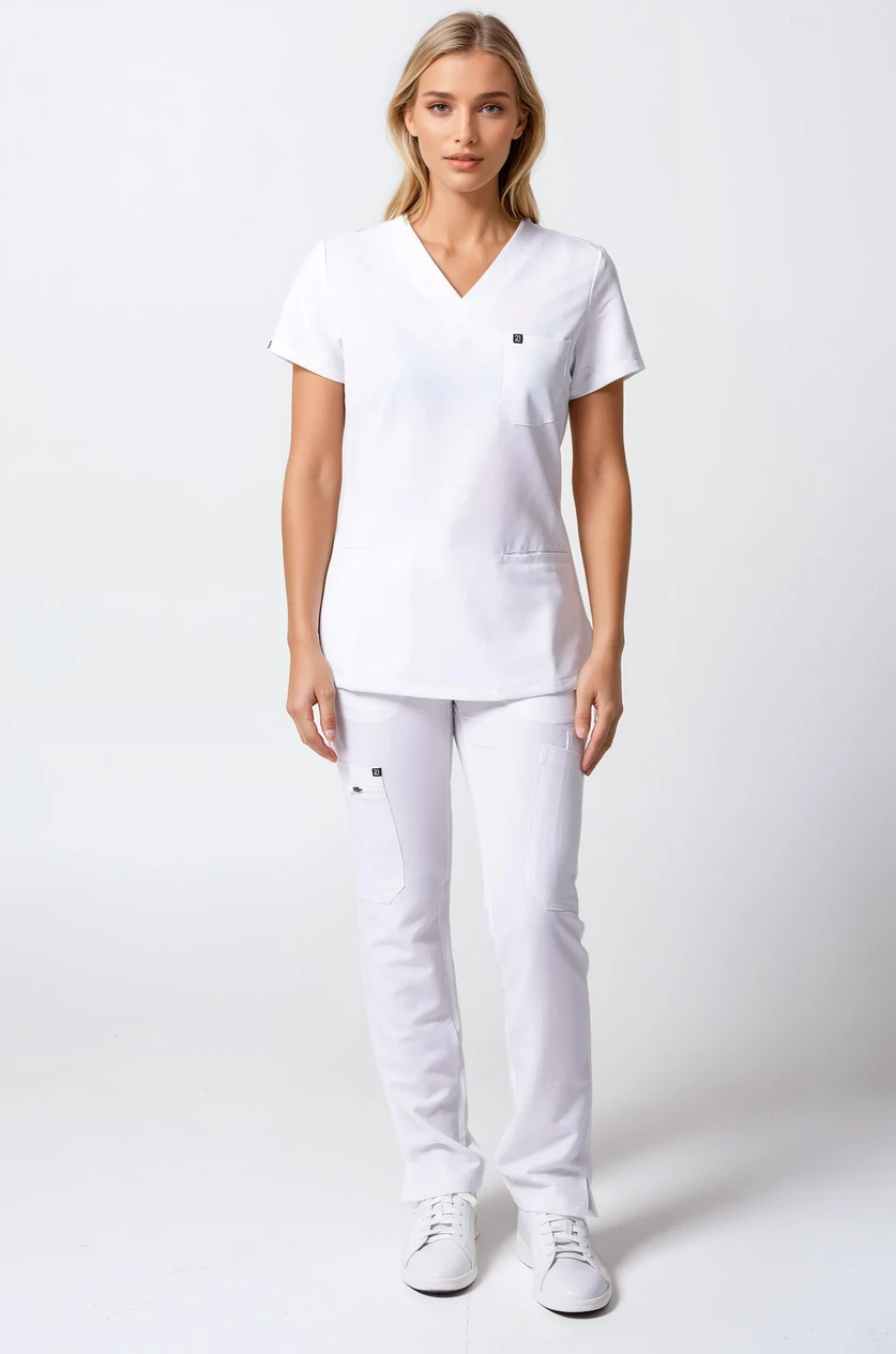 This set is your go-to for a sharp, put-together look that keeps up with the demands of your day. Select your sizes and make this sophisticated white set a staple in your medical wardrobe.
