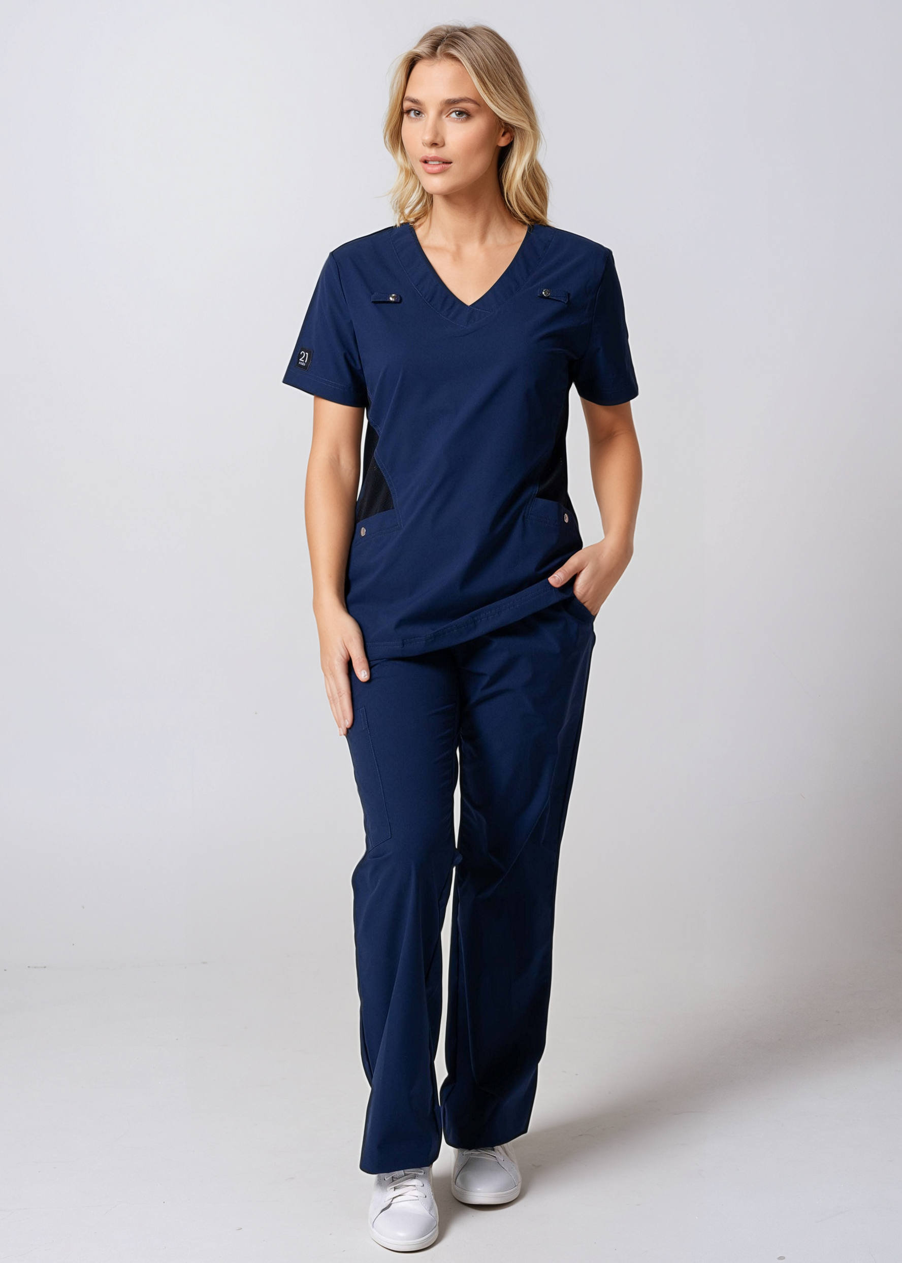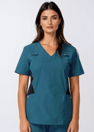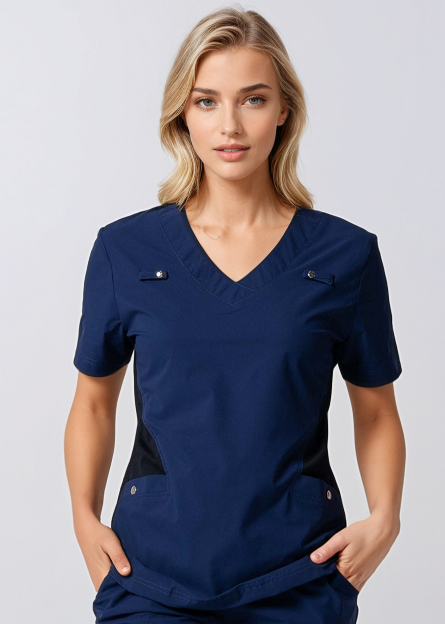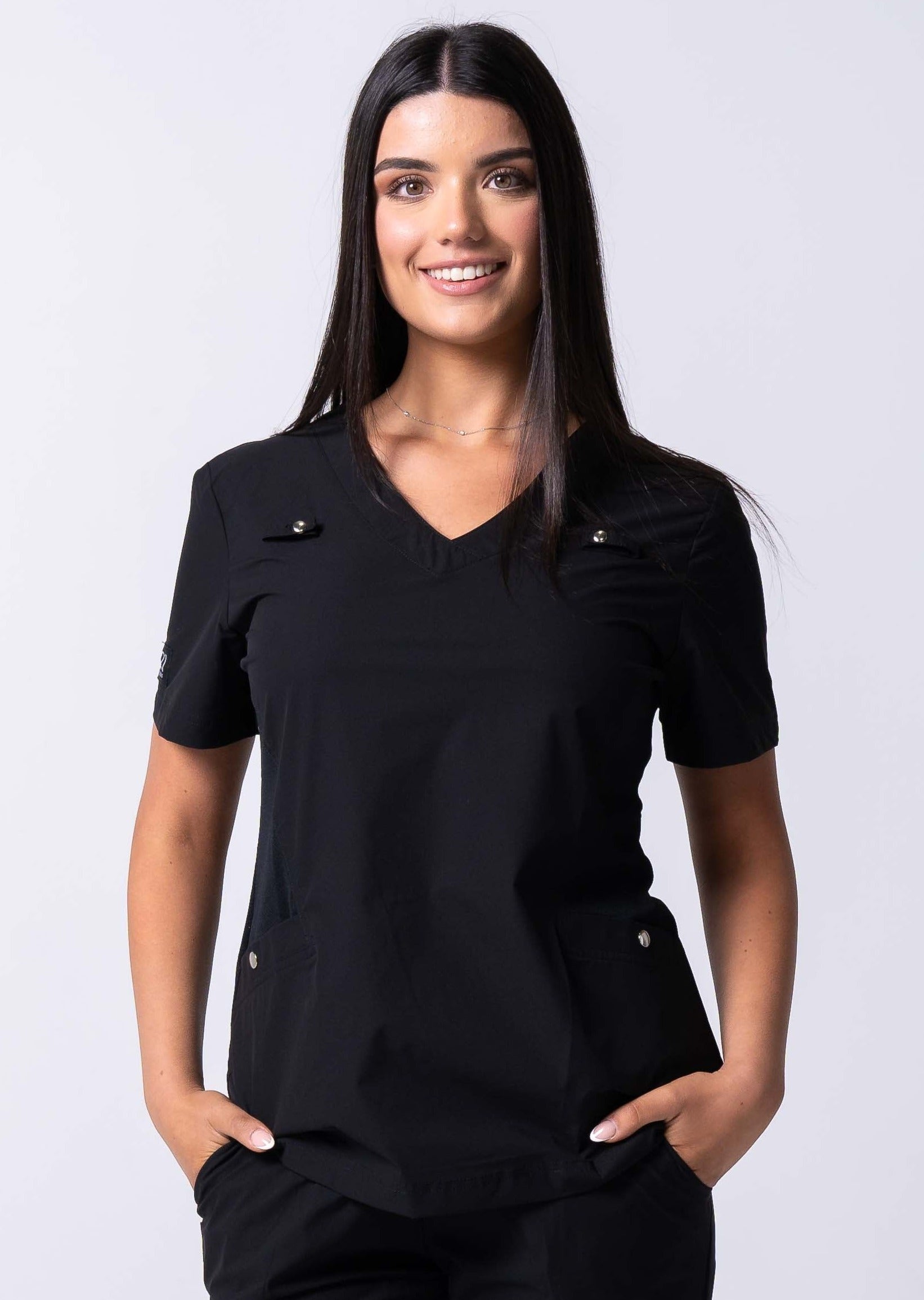 The 21 Margot Women's Smart Scrub Top is a must-have for your scrub robe. With a slim fit, V-neckline, and practical pockets, it's designed for style and function—perfect for your everyday shifts.