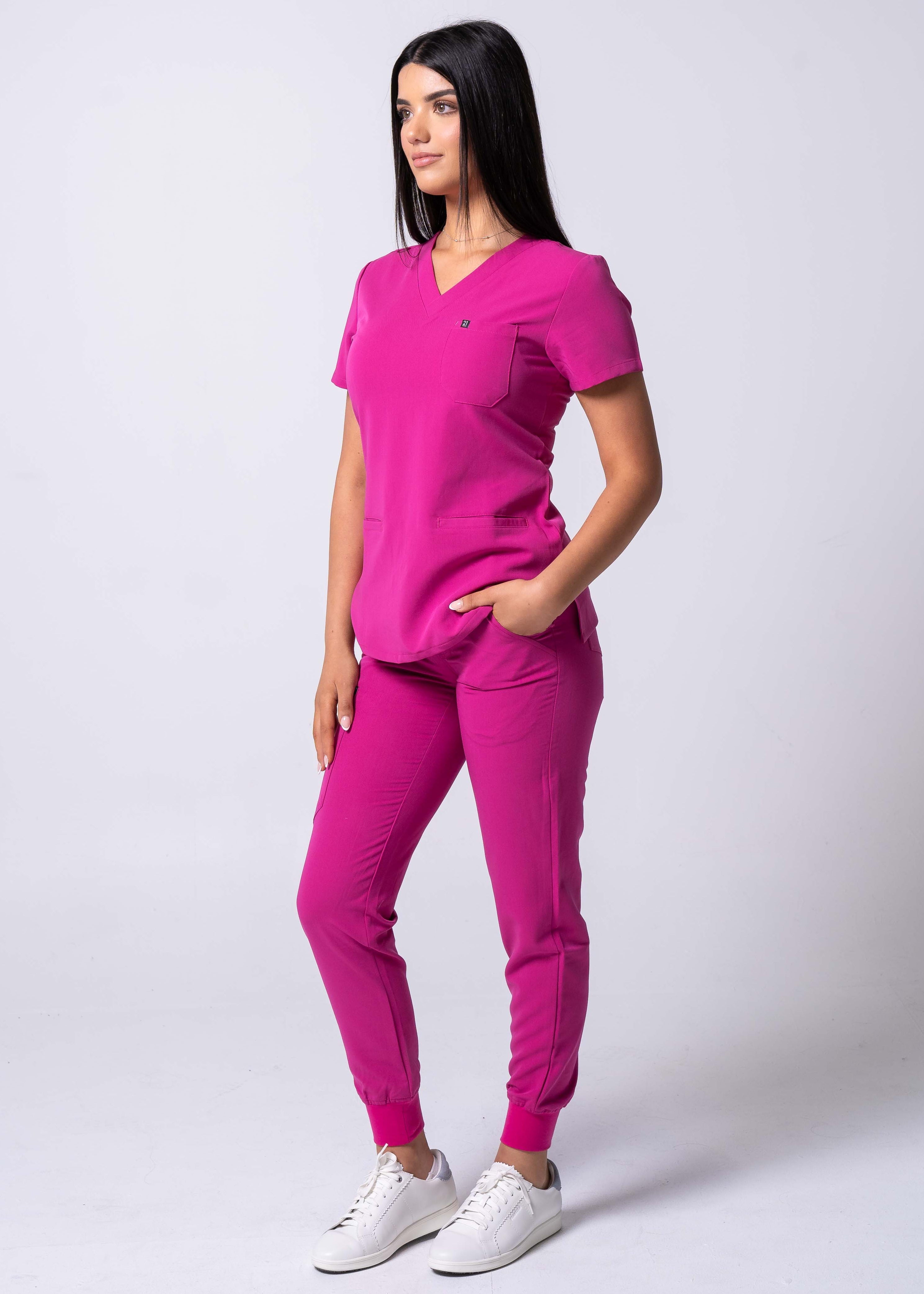 Our 21FigR™ fabric It is buttery soft, anti-wrinkle and features a comfortable 4-way stretch. No starchy feels, 21FigR™ feels comfortable and silky to touch.