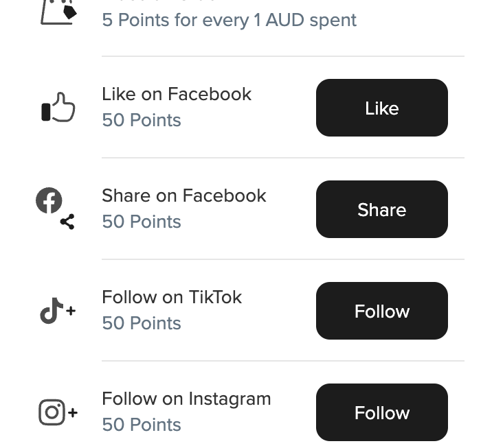 Receive 50 points for every $10 spent. You can also earn more points by simply liking and following our social media channels.