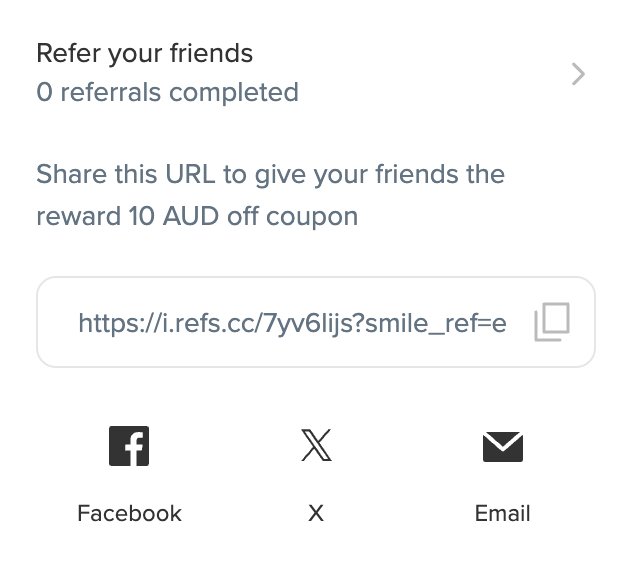 Give your friends $10 off their purchase with your unique referral link. When they purchase you'll also get a $10 voucher to use.