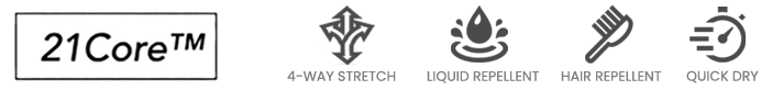 21Core™️ fabric is made from Polyester with 1/3 of the polymers used for this fabric being plant derived. Machine wash in cold water. Do not bleach. Tumble dry low and warm/low iron only if required.